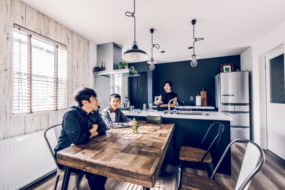 アメカジ工務店はFacebookで知って、広くてオシャレな土間が良いなと。担当のスタッフさんに何件ものモデルハウスを見せてもらって、それぞれのオーナーさんの強いこだわりや、他社にはない間取りやデザインの個性を感じました。色々な住宅会社を見たのですが、グイグイしつこく営業されたり、二世帯住宅と言うとどこか素っ気なく対応されたりして。アメカジのスタッフさんは二世帯で住むことに協力的な姿勢だし、僕たちのわがままにも真剣に向き合ってくれて。アメカジでお願いしようと決めました。