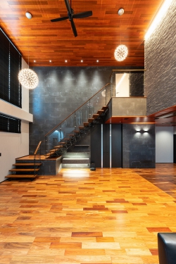 家で最も重みを受ける梁に木と鉄を融合させ、高い耐震性を確保するテクノストラクチャー工法。