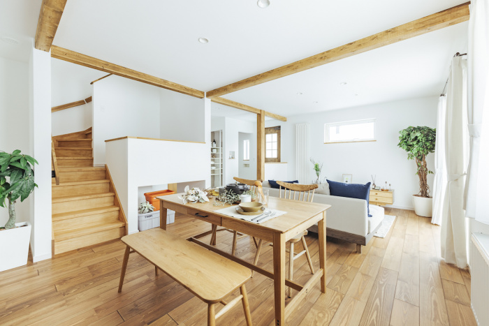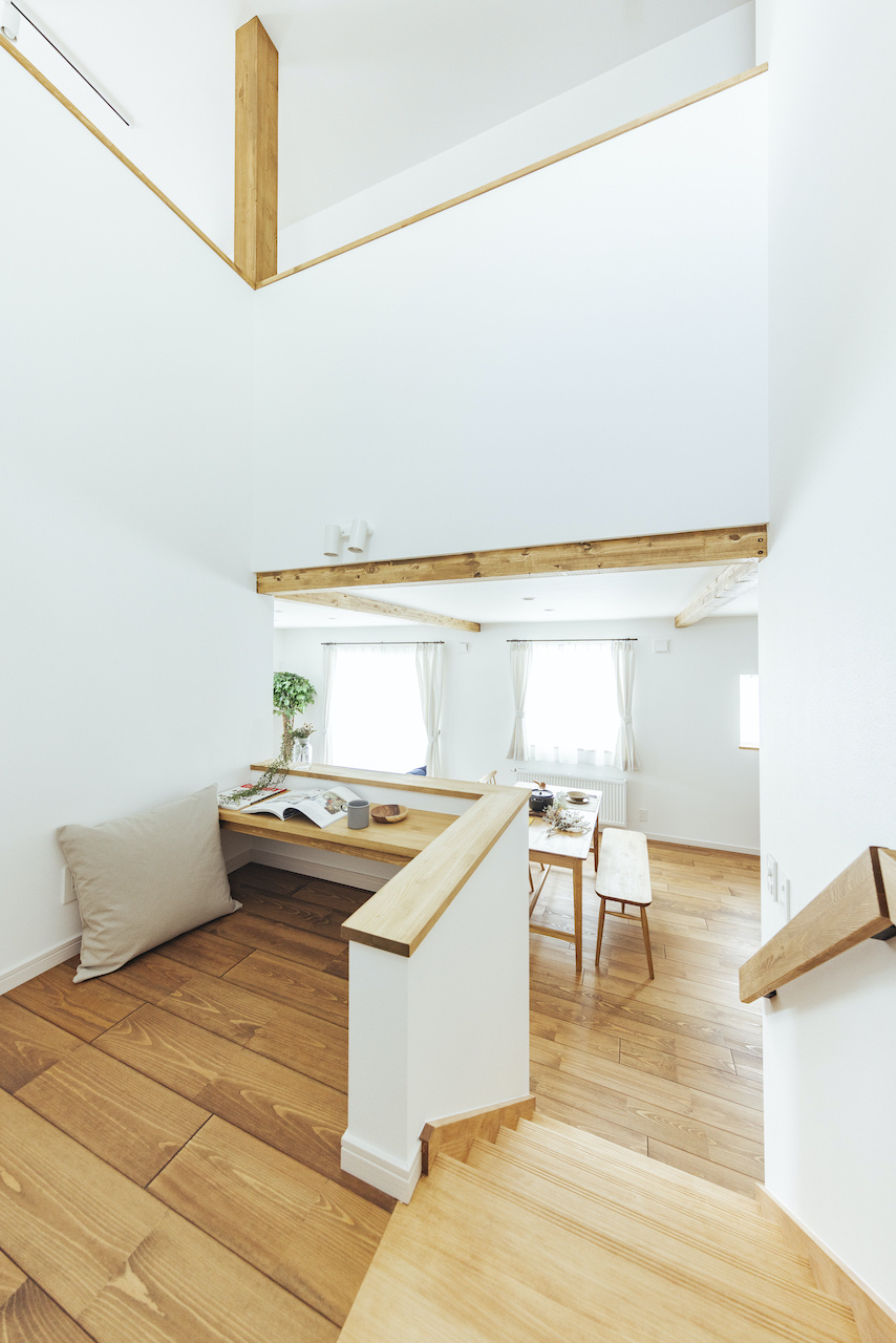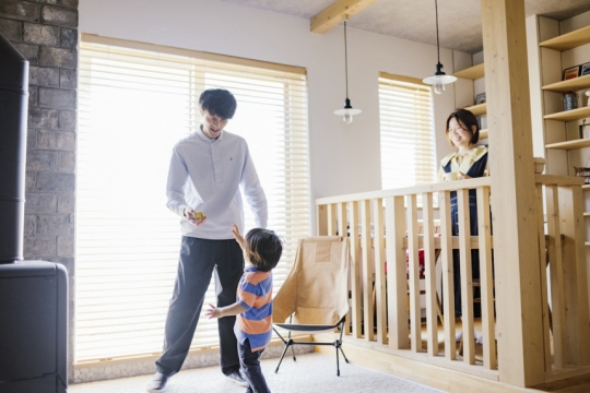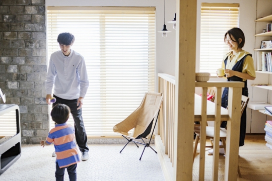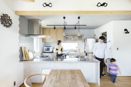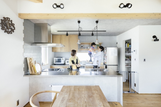 やさしいご夫婦と元気な男の子が暮らす家。広い土間や明るい2階のリビングで、のびのび暮らすご家族にお話を伺いました。