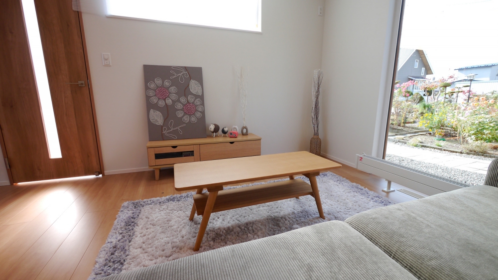 無垢床もメンテナンスが大変かなと、ちょっと不安でしたが、拭くだけなので気にすることなかったです。何より、冬は冷たくないし、サラサラしていて気持ちいいですね。無垢床にして本当に良かったです。 外構はまだ手つかずなので、雪がとけたら、ウッドデッキや家庭菜園などを考えています。