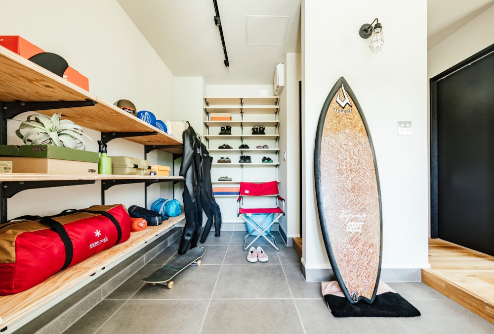 キャンプ道具やゴルフなど、外遊びを楽しむアイテムがいっぱいのS様邸。
