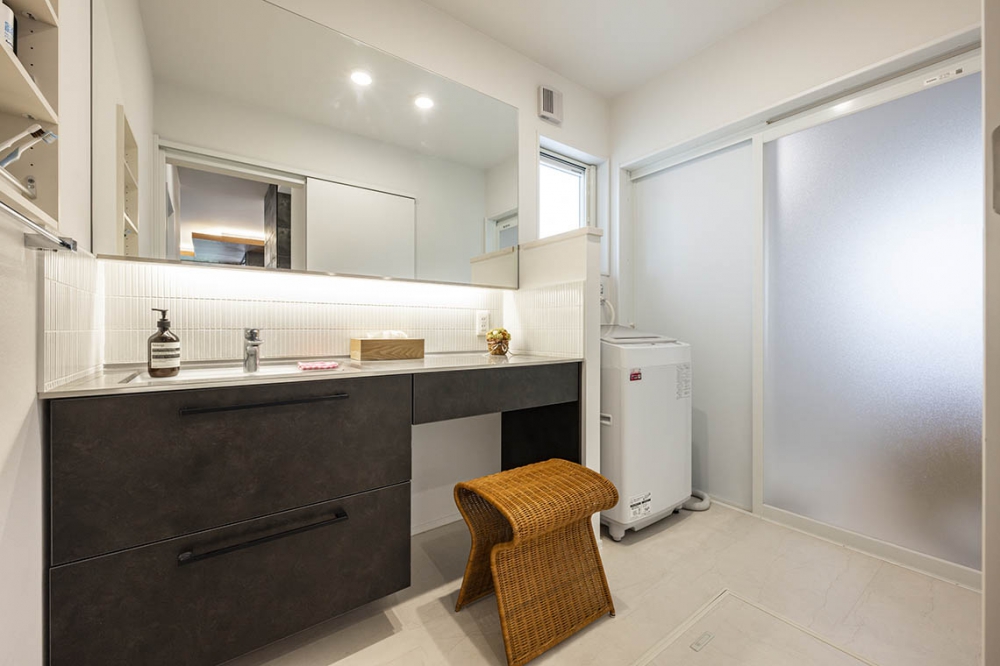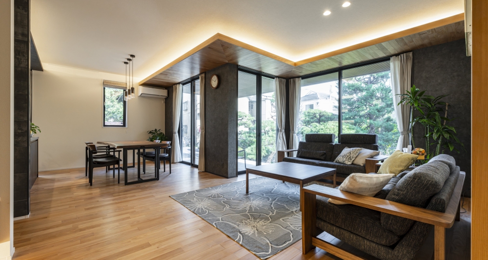 各空間には光や風、そして眺望を取り込み広がりと心地よさが調和する設計を施しています。内部には自然素材をふんだんに用いて、親世帯は落ち着きと趣を大切にした空間に。 一方、子世帯は木のぬくもりを活かしたシンプルで明るい空間に仕上げ、暮らしの中で彩を加える余白を残しました。