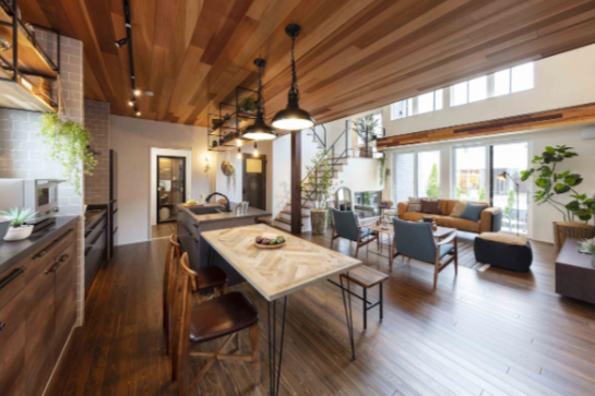 ワンフロアにプラス勾配天井空間のゆとりあるスタイル