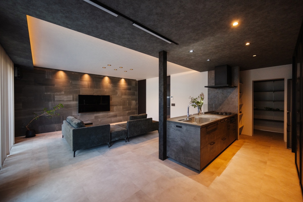 コンパクトでも、心地よく、かっこよく。素材と色にこだわった、洗練された平屋
