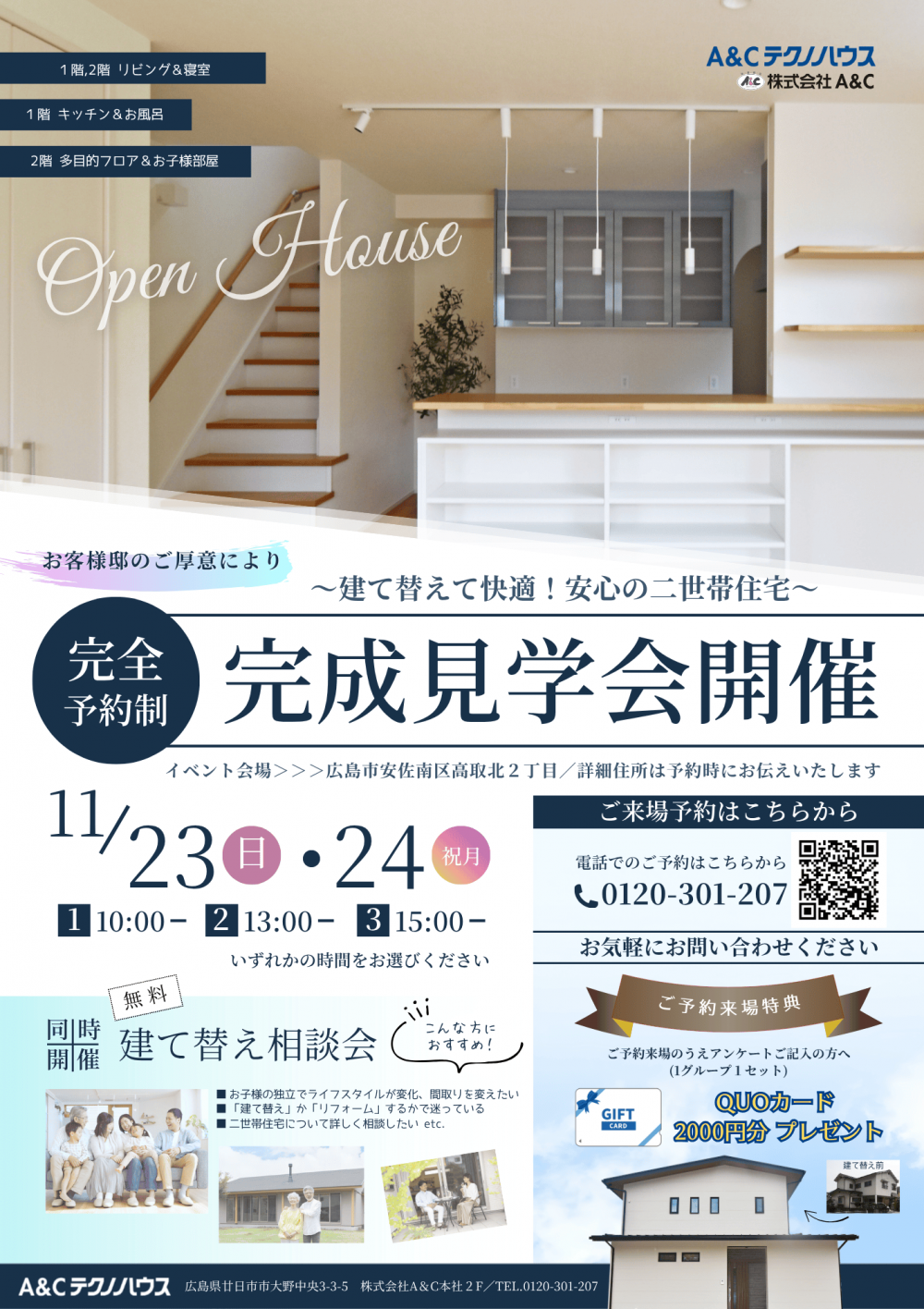 広島県廿日市市で60年以上の実績を誇る「A&Cテクノハウス」は、“安心・快適・未来志向”をコンセプトに、家族の暮らしを守り育む住まいづくりを手がけています。