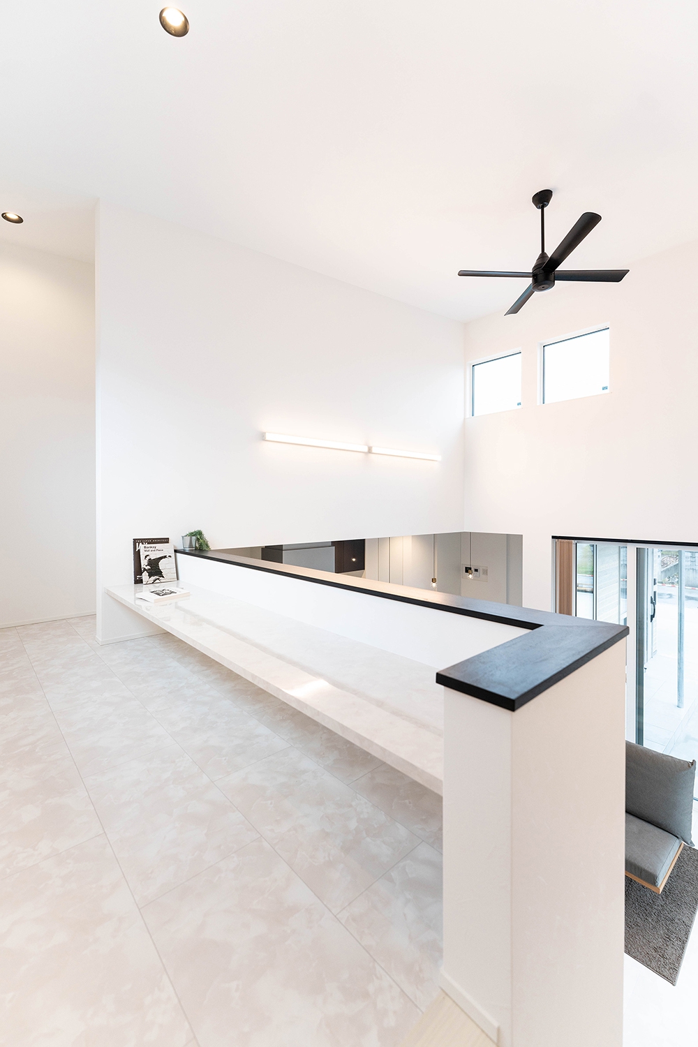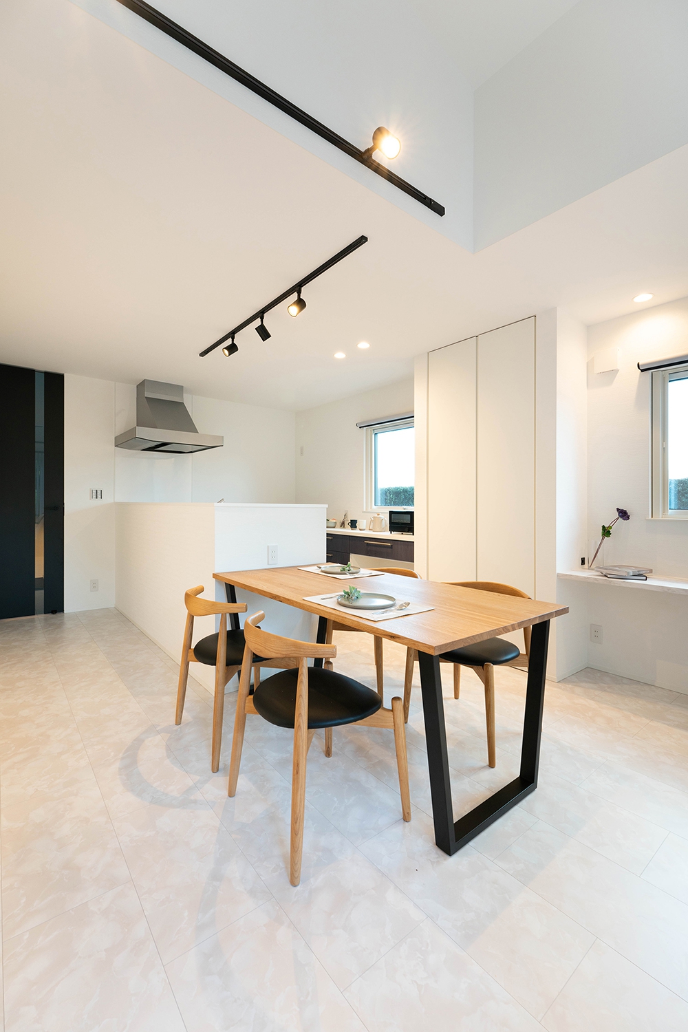 床・壁・天井まで白で統一した空間に、黒のアクセントを加えてモノトーンテイストに
