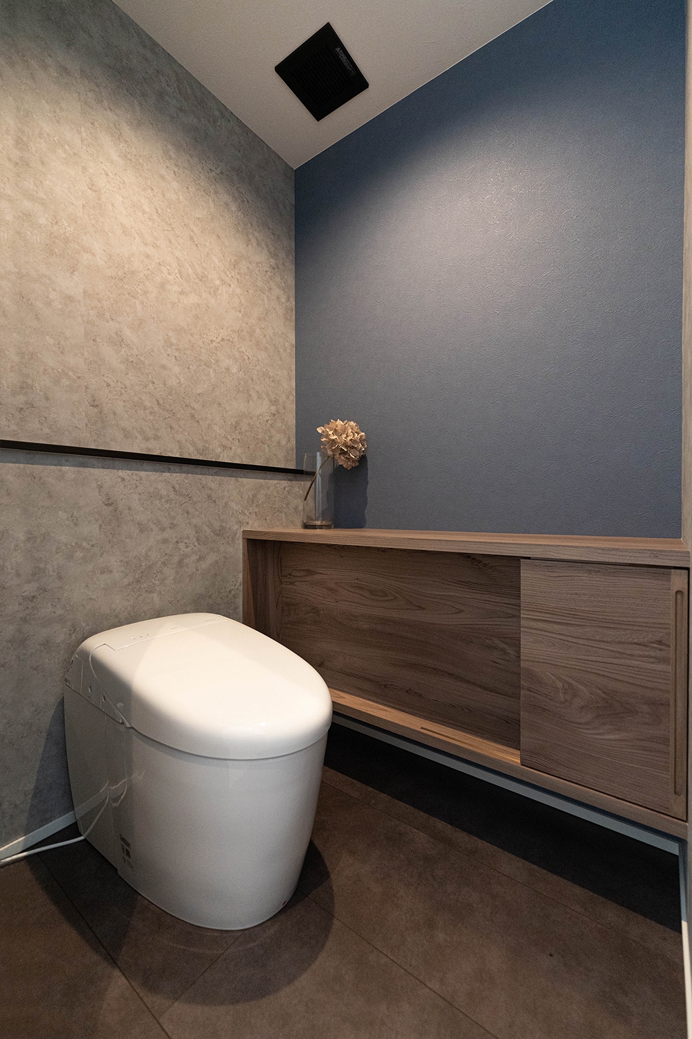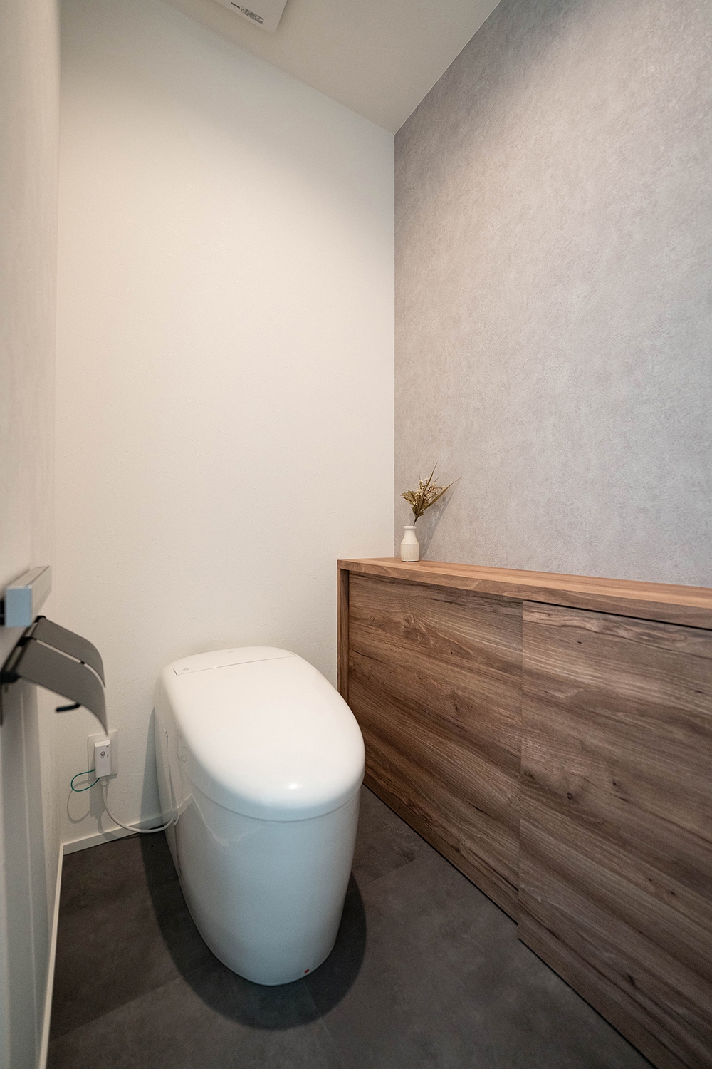 トイレは和モダンを感じる落ち着きのある空間に仕上げた