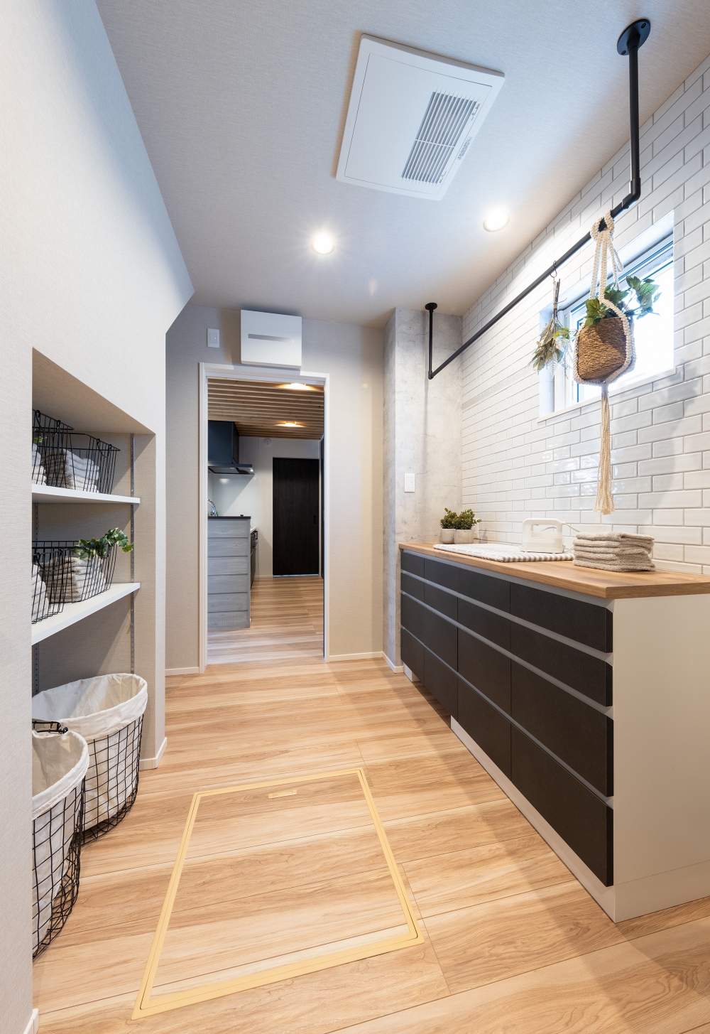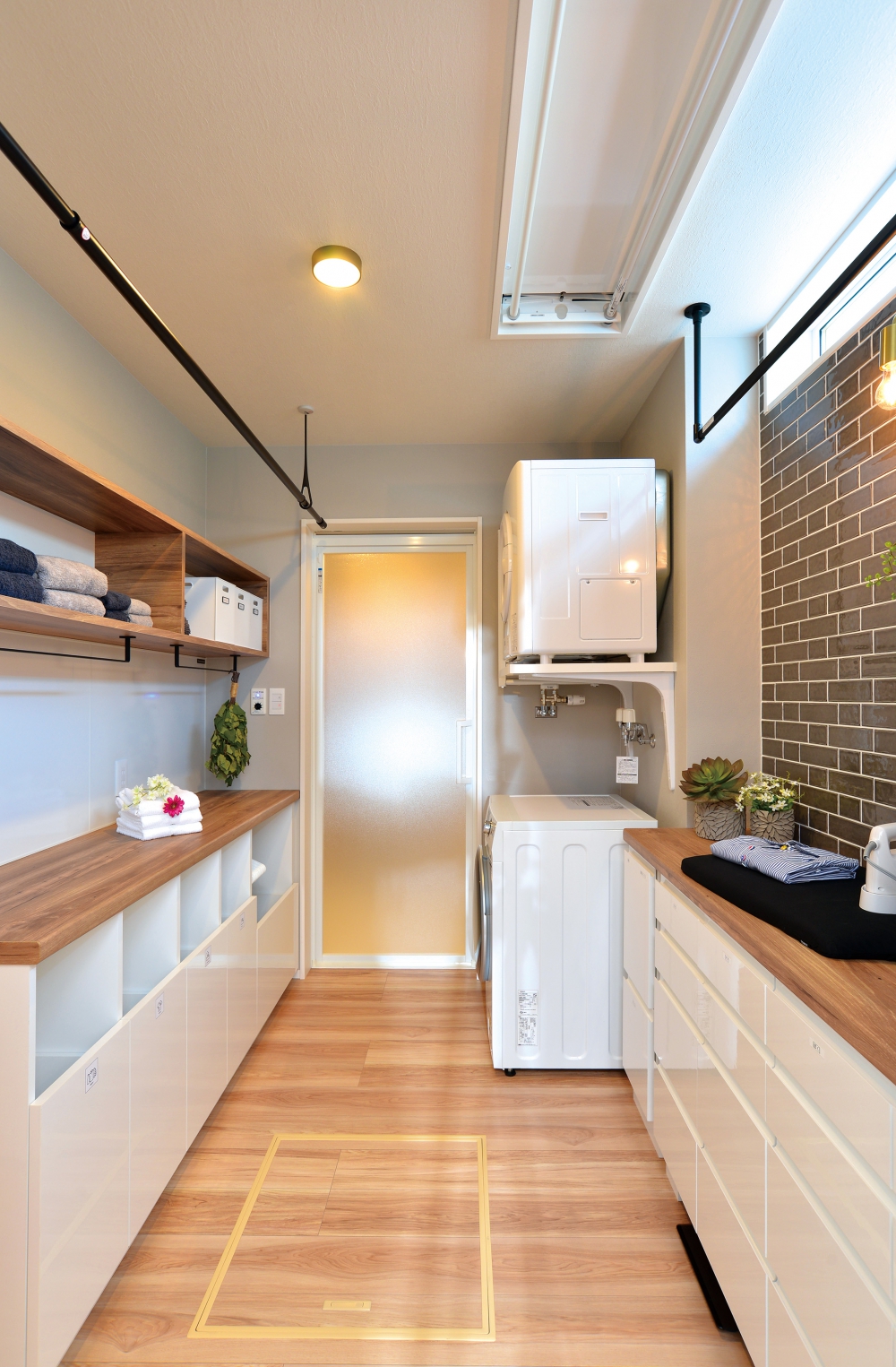 洗う・干す・しまうを一か所で完結できる、家事ラク動線のランドリールーム。