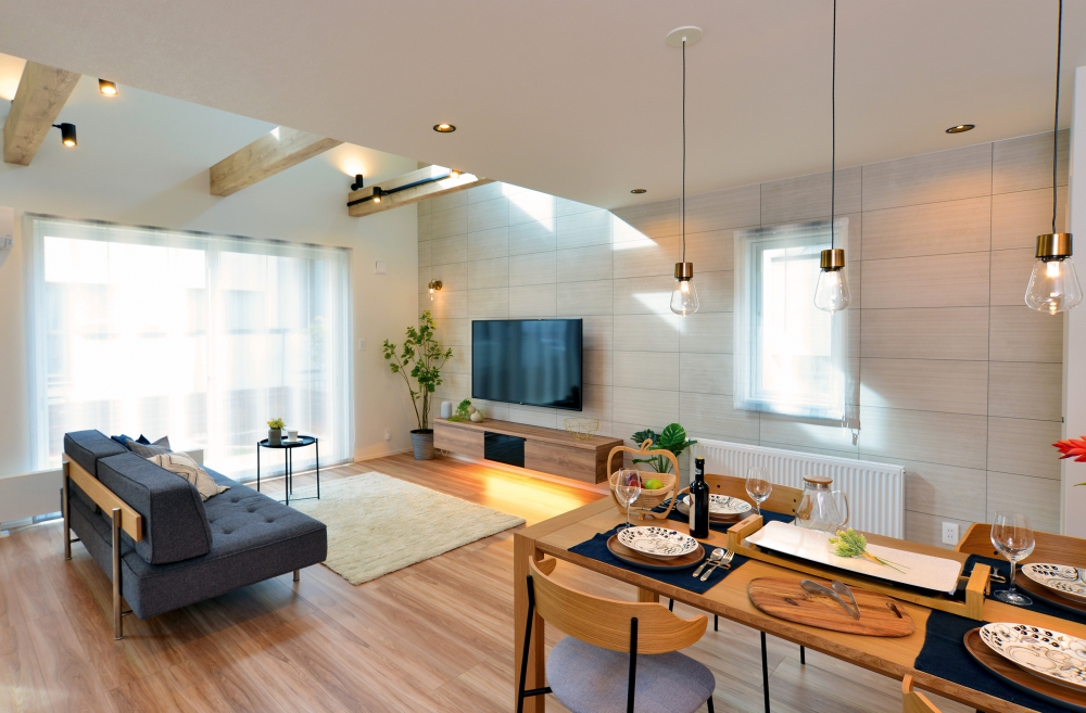 大きな窓から陽光が注ぐ、家族全員で愉しめるリビング。