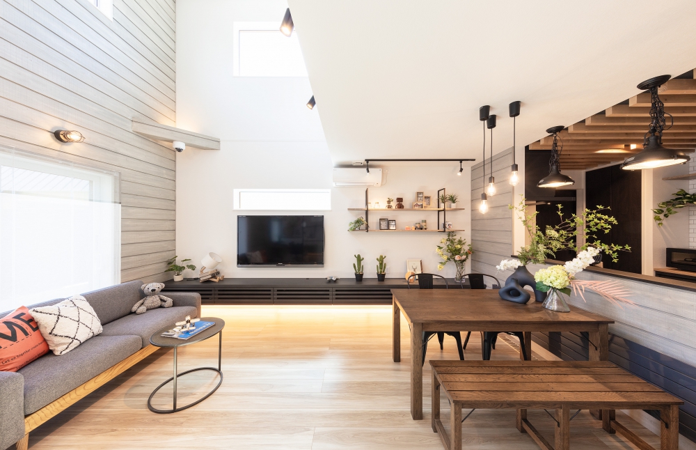 光が満ちる吹き抜けのリビングで、家族の時間がもっと心地よく。
