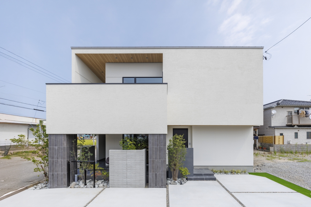 外観はBOX型のシンプルでノイズレスな仕上げ。広すぎず狭すぎない24坪の住まい。