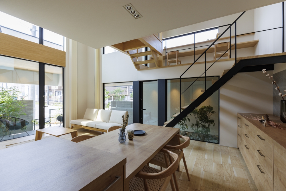 建築壁で囲われた16帖の完全プライベートな中庭なので基本カーテンレスで心豊かに暮らせます。