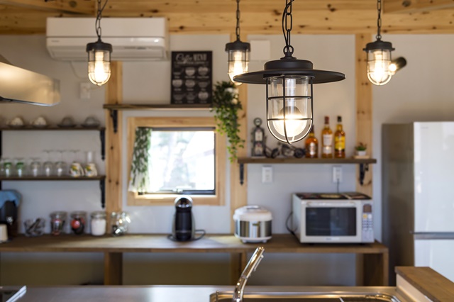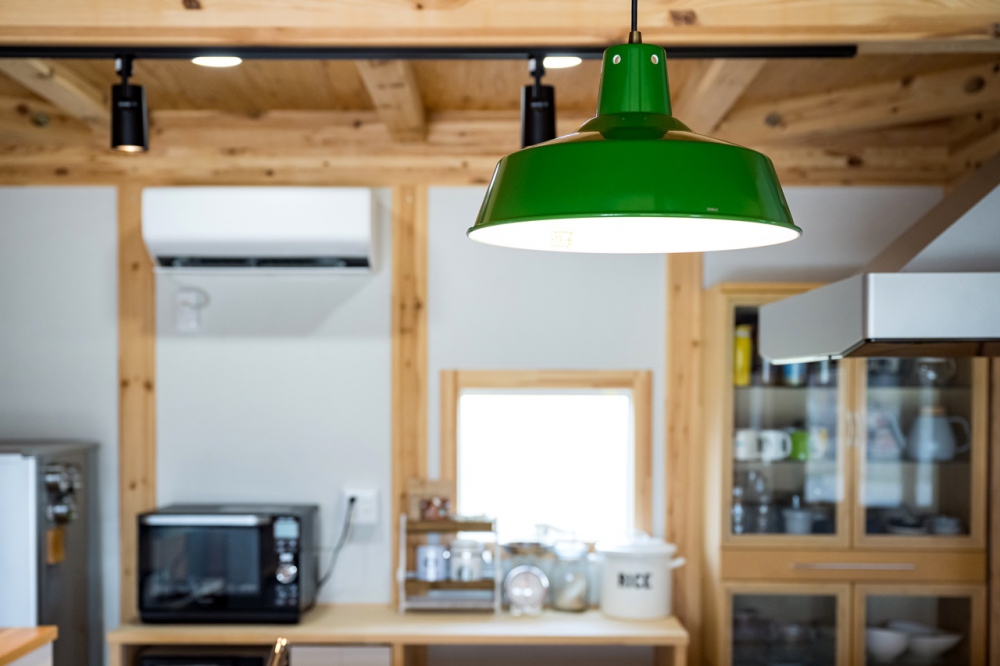 毎日多くの時間を過ごすキッチンだからこそ、照明や雑貨にこだわりお気に入りに仕上げた。「以前より雑貨屋さんを覗く回数が増えた」とクスッと話してくれた奥様。こだわりのインテリアに囲まれた暮らしは、手の込んだ料理を作りたくなる場所になった