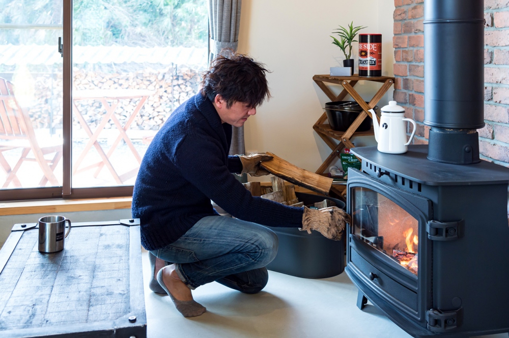 薪ストーブの周りには人が自然と集まる。揺れる炎を見ていると、無理に会話しなくても心が通じる気さえしてくるから不思議だ。「薪をくべるのが楽しみで、ソファのスペースが好きです」とご主人。すぐに火の扱いにも慣れ、冬場は出かける時も火はそのままに、帰ってきた時の温もりにホッとするそう。ストーブの道具を揃えるのも楽しみで、ついついショップを訪れてはオーナーと他愛もない会話を。ストーブライフを通じて、新しい人との出会いがあるのも特典だ