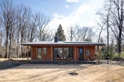 多くの商品ラインナップから、空間に無駄がなく自分達にちょうどいいサイズのCOVACO(コバコ)に決めた。周りの景観に溶け込む、木と黒の外壁を組み合わせたログハウス風の平屋での暮らし。LDKと外の両方から繋がるアウトドアストッカーでは、バイクガレージとして愛車のメンテナンスを楽しんでいる。ストーブの揺れる炎に癒されたり、ウッドデッキでコーヒーを飲んだりと、充実のセカンドライフだ