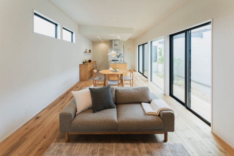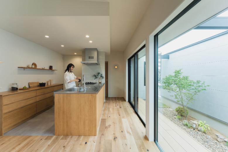 木の香りや手触りなど、自然素材が持つ魅力を活かした住まいづくりを提案しています。素材自体の表情や質感を大切にし、家に帰る喜びや家族との豊かなひとときを演出することで、住む人に安らぎを提供します。快適な空間を実現するためには、断熱や気密、防音などの性能向上はもちろん、ライフスタイルに合った内装やインテリアのコーディネートが重要です。色・素材・デザインをバランス良く整え、ご家族にとって居心地の良い空間づくりをお手伝いします。