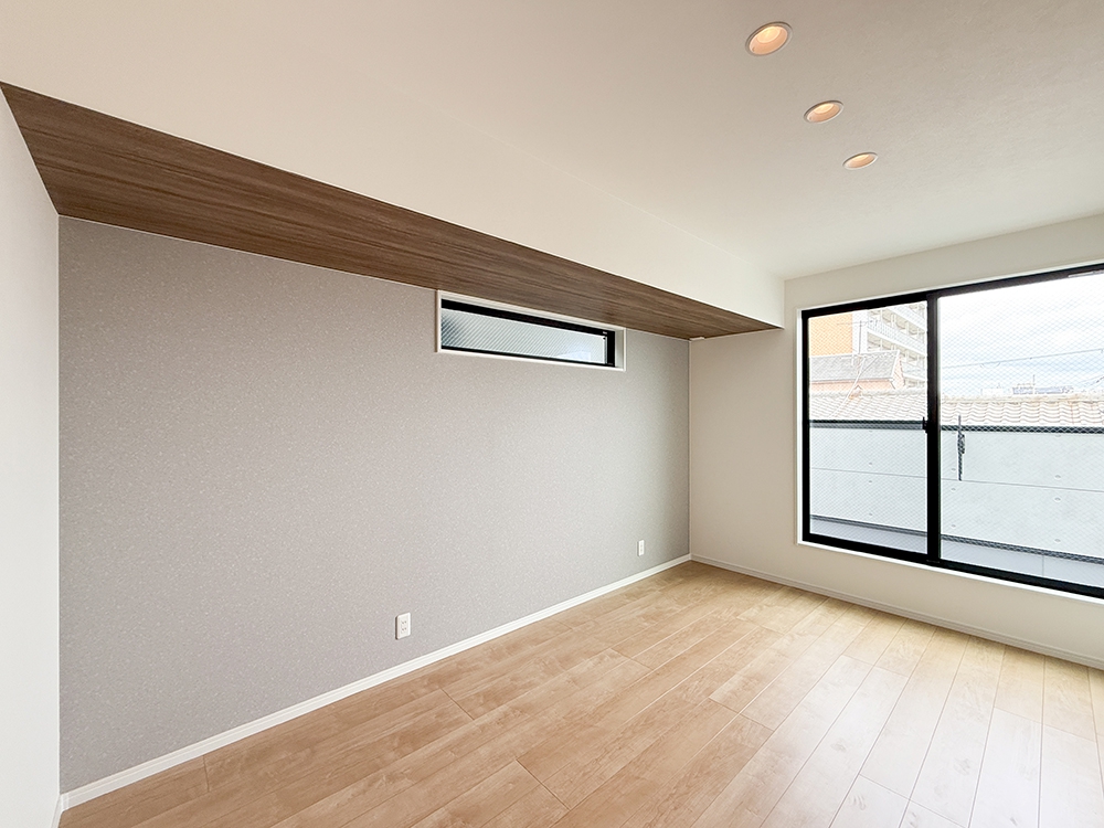 2階に上がってすぐのサービスルームは、暮らしを支える便利なスペースとして活用できます。天候や時間を気にせず、たっぷりの洗濯物を干せるランドリースペースとして使えるほか、収納棚を設ければ、季節家電や日用品のストックをまとめてしまえる家族共用の収納スペースとしても活躍します。