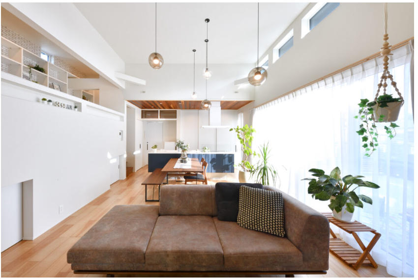 木造住宅では難しかった、耐震性の確保と希望の間取りの両立。Codaの家は、パナソニックの「テクノストラクチャー工法」と「構造計算」を採用。これにより強度を保ちながら柱を減らすことができ、開放感のある吹き抜けや、天井の高い広々とした大空間など、お客様の希望する間取りを実現します。