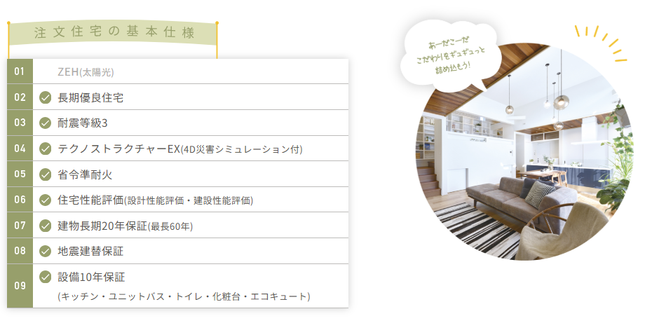 長期優良住宅や高断熱・省エネ性能も標準装備で安心です。引き渡し後のメンテナンスもお任せください。 土地探し・ローン・補助金など、家づくりに関する相談もまとめてサポート。地域に根ざした工務店ならではの丁寧な提案で、生涯にわたる安心・快適な住まいをお届けします。