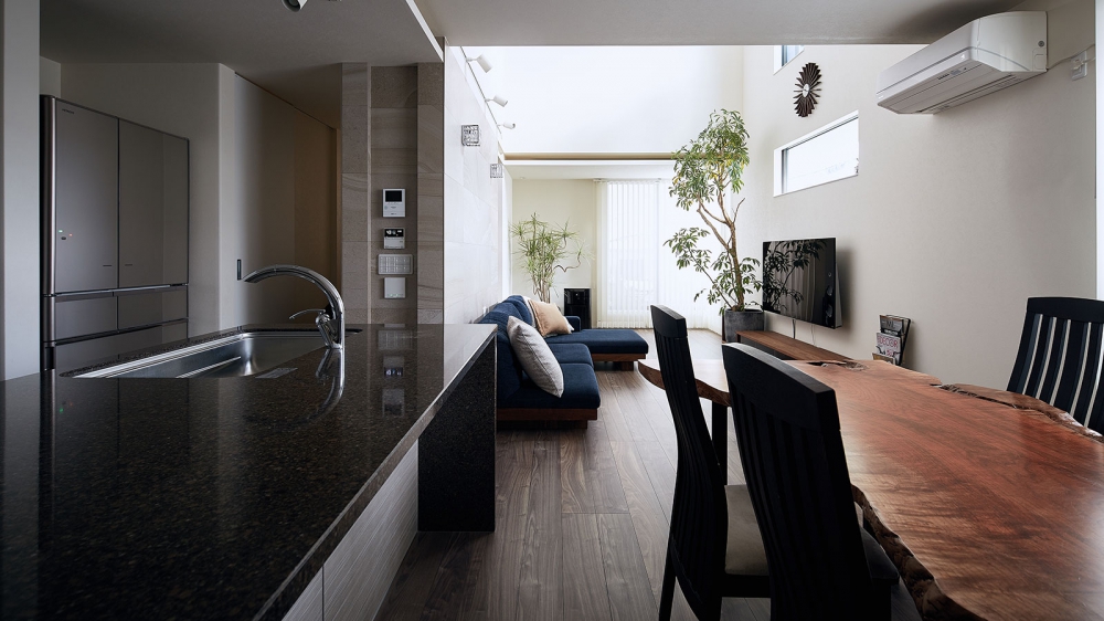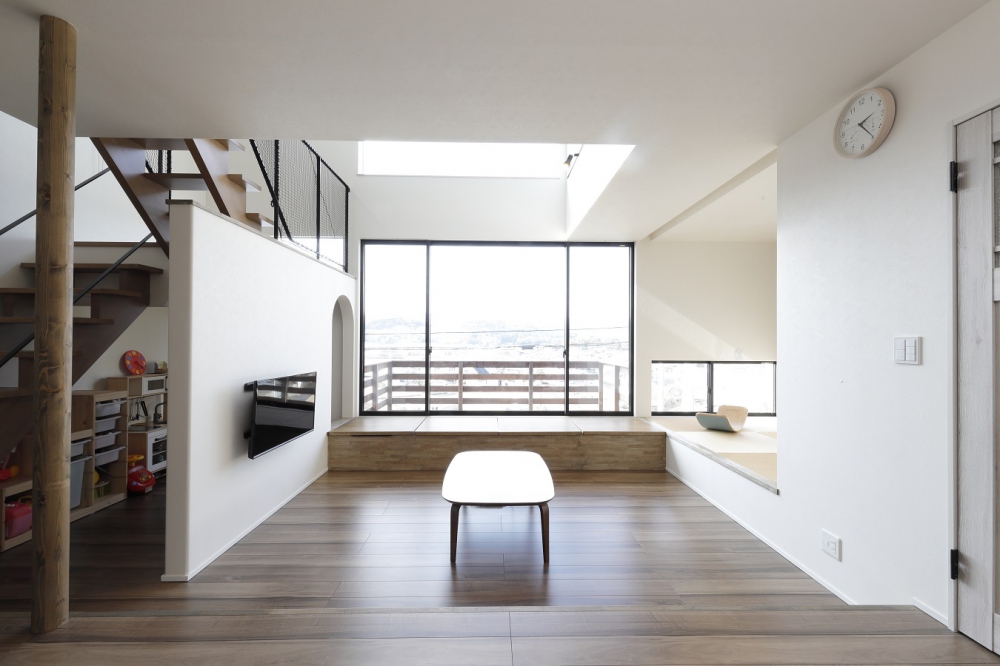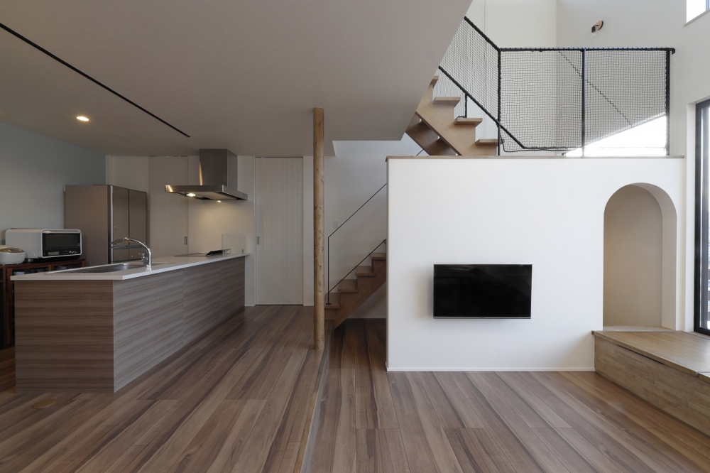眺望・吹き抜けのある家・スキップフロア・ダウンリビング・アイランドキッチン |