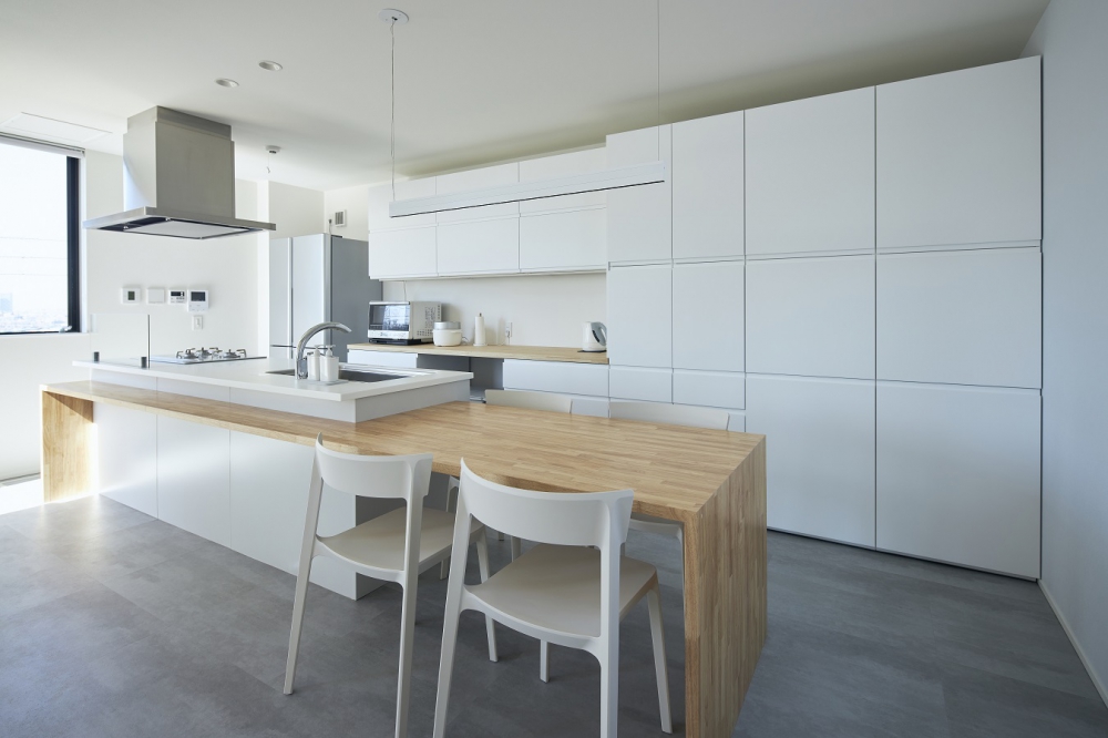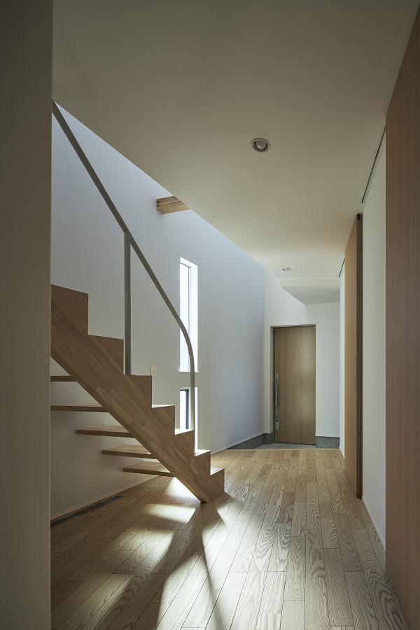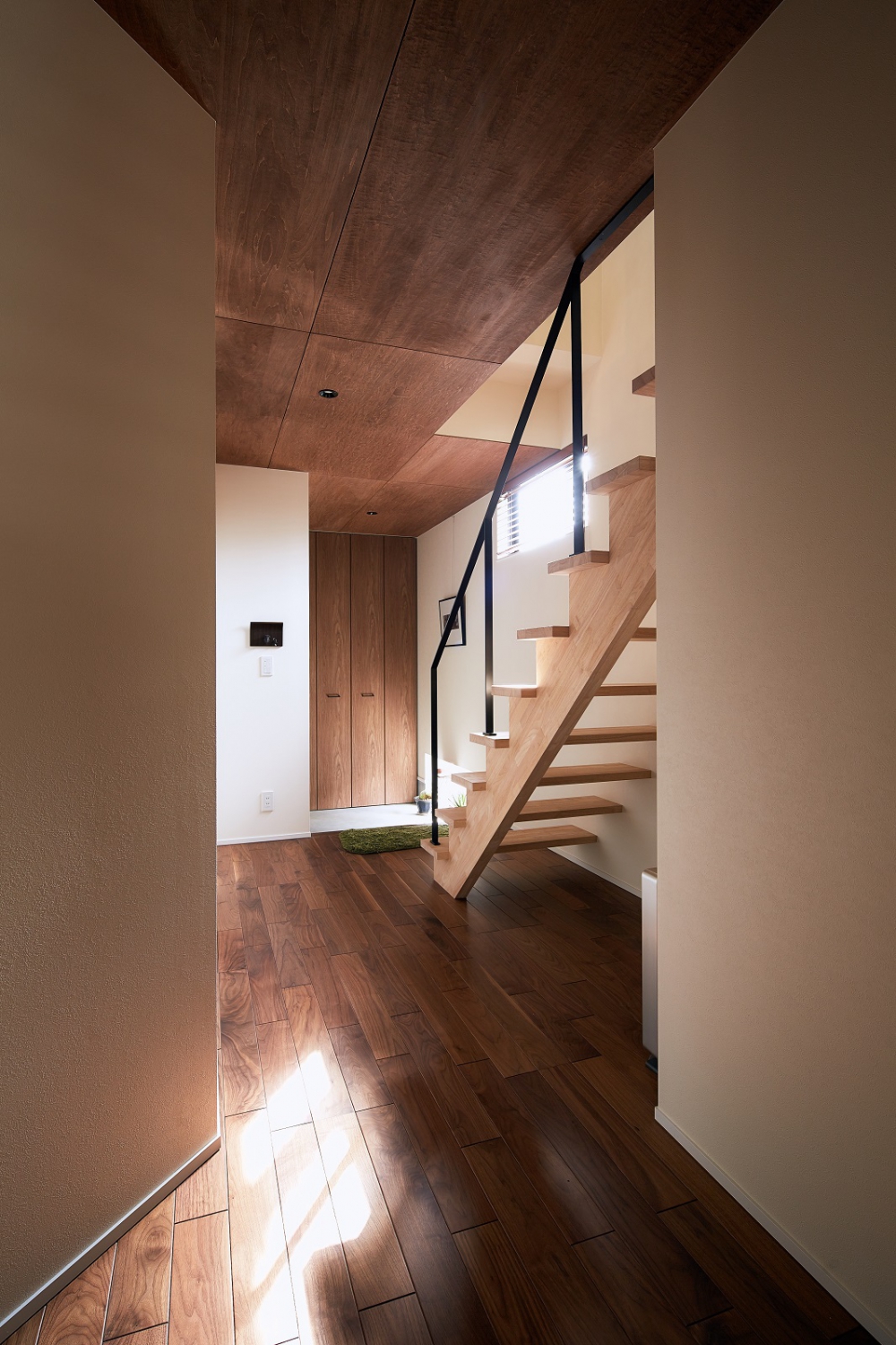 シンプルモダン・2階LDK・アイランドキッチン・壁面収納・ストリップ階段・ナチュラル |