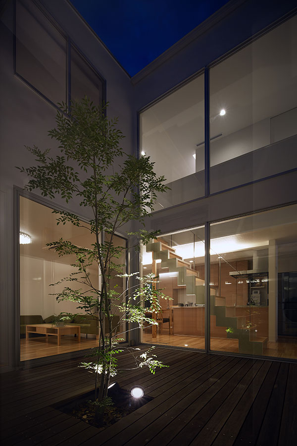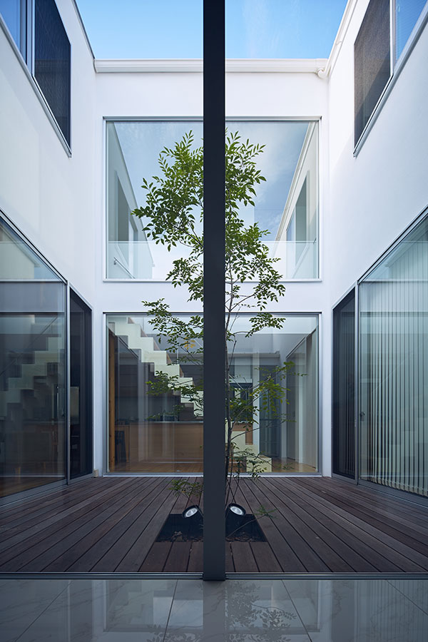 中庭を囲むロの字型の家Ⅱ/東大阪市