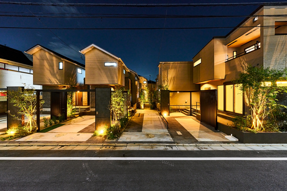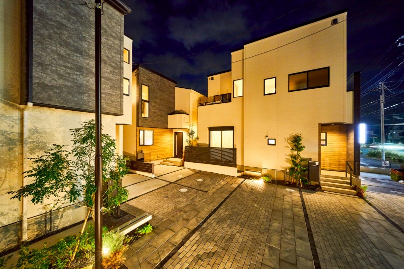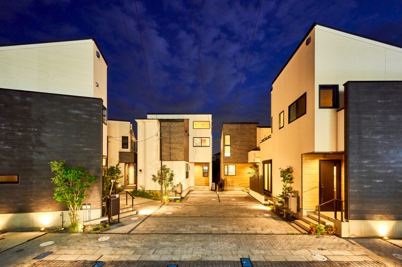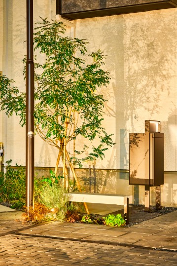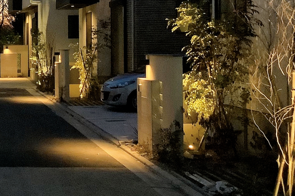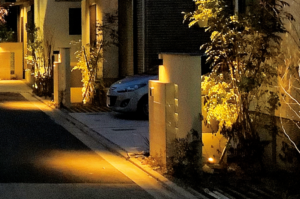 日が暮れると各邸の門灯などが自動点灯し、夜間の安全性と景観の美しさを高めています。※ 長寿命でランニングコストの低いLEDライトを採用。※写真はイメージです