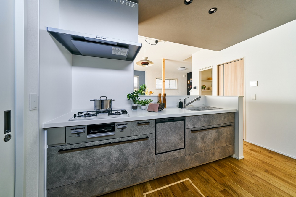 キッチンは壁で仕切らないオープンタイプを採用。開放的な空間で料理をすることがより一層楽しくなり、家族との会話も広がります。写真はイメージです