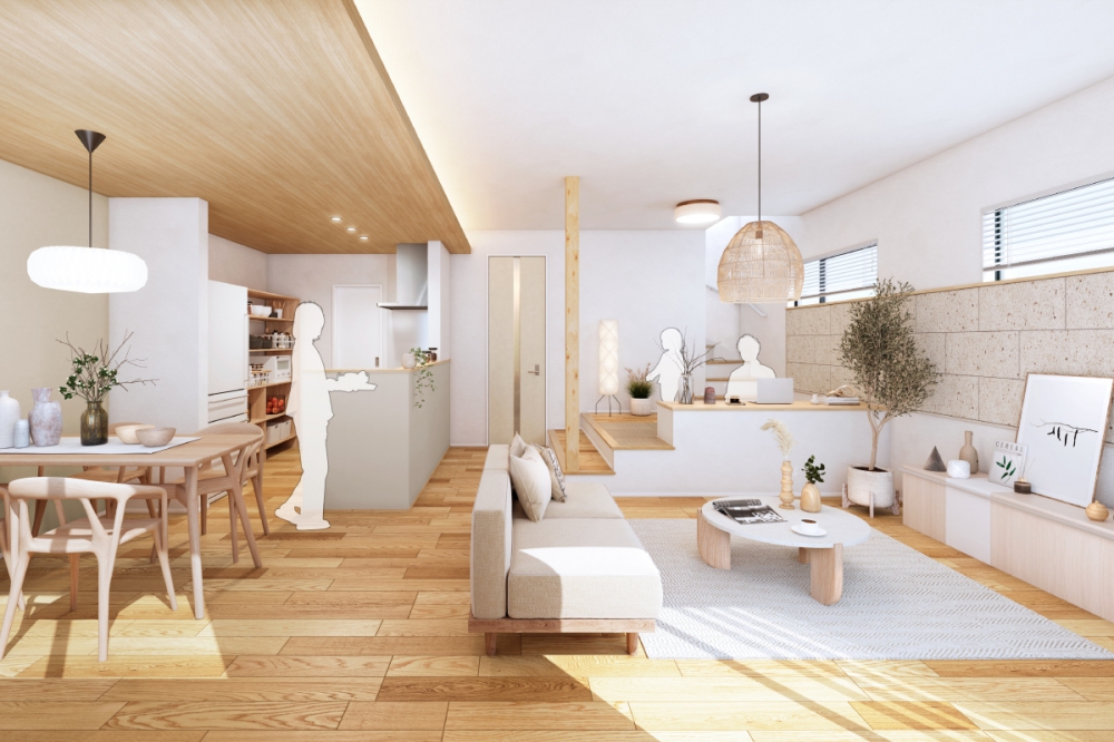 リビングとつながる開放的な一体空間でありながら、多目的に使えるフラットマルチをご用意。趣味やキッズスペースなど、暮らしの楽しみが広がります。※3号棟LDK完成予想図リビングとつながる開放的な一体空間でありながら、多目的に使えるフラットマルチをご用意。趣味やキッズスペースなど、暮らしの楽しみが広がります。※3号棟LDK完成予想図