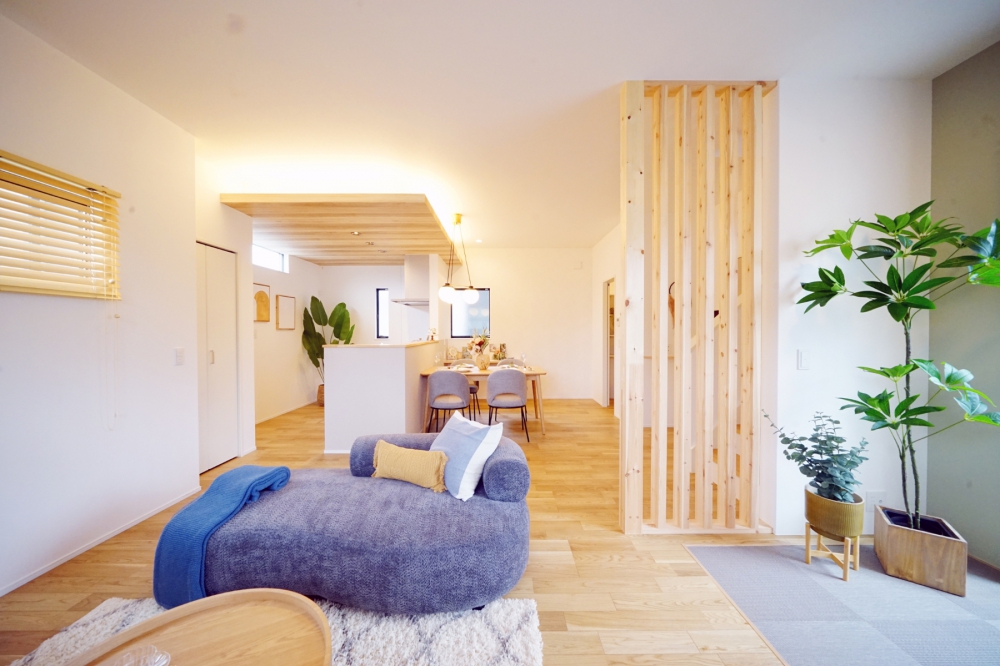 LDKは20帖の広さを確保し、圧迫感をなくすDECO MADOや開放的なキッチンを採用。