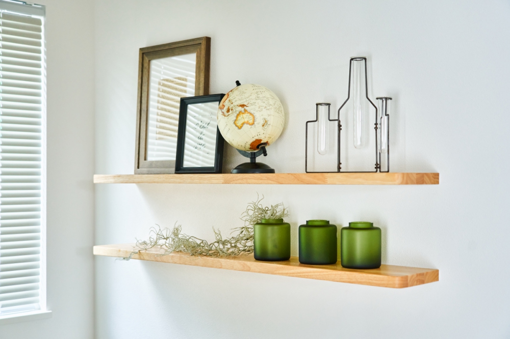 お気に入りの写真立てや小物を飾ることができる自慢の棚です。※Image