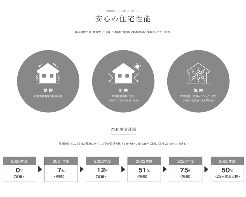 | アフター保証 | 地盤品質保証20年、瑕疵担保責任保険10年、建物長期保証20年、設備保証10年、しろあり保証10年(延長保証により最長30年※有償)、無償定期点検3カ月、1年、2年 有償点検(※任意)5年、15年、20年、25年 |