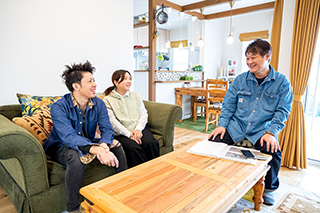 まず初めに申し上げますが、当社は小さな会社です。しかし、私たちには夢があります。「健康に暮らせて、メンテナンスがかからず、日々の暮らしが楽しくなる家」をつくるという夢です。そして、その家には家族の笑顔が溢れる。地元の棟梁、地元の職人さんの手で、あなたの住まいを一棟一棟大切に創っています。