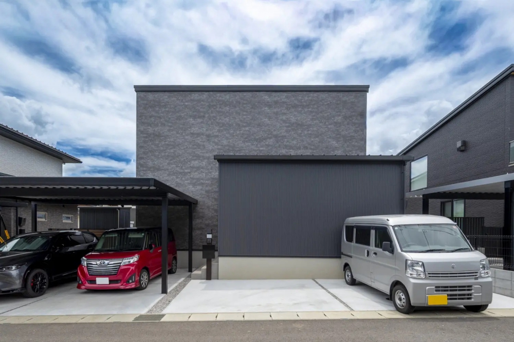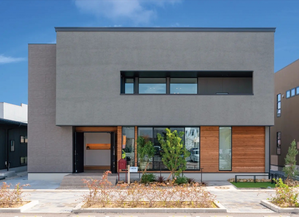 岐阜県各務原市「岐阜ハウジングギャラリー各務原展示場」にOPENの「各務原展示場」は、モダンで印象的なファサードデザインを採用し、2階建てなのに7層構造のスキップフロア構造、標準天井高よりも0.3mも高い天井高を実現した「高天井」仕様のモデルハウスです。