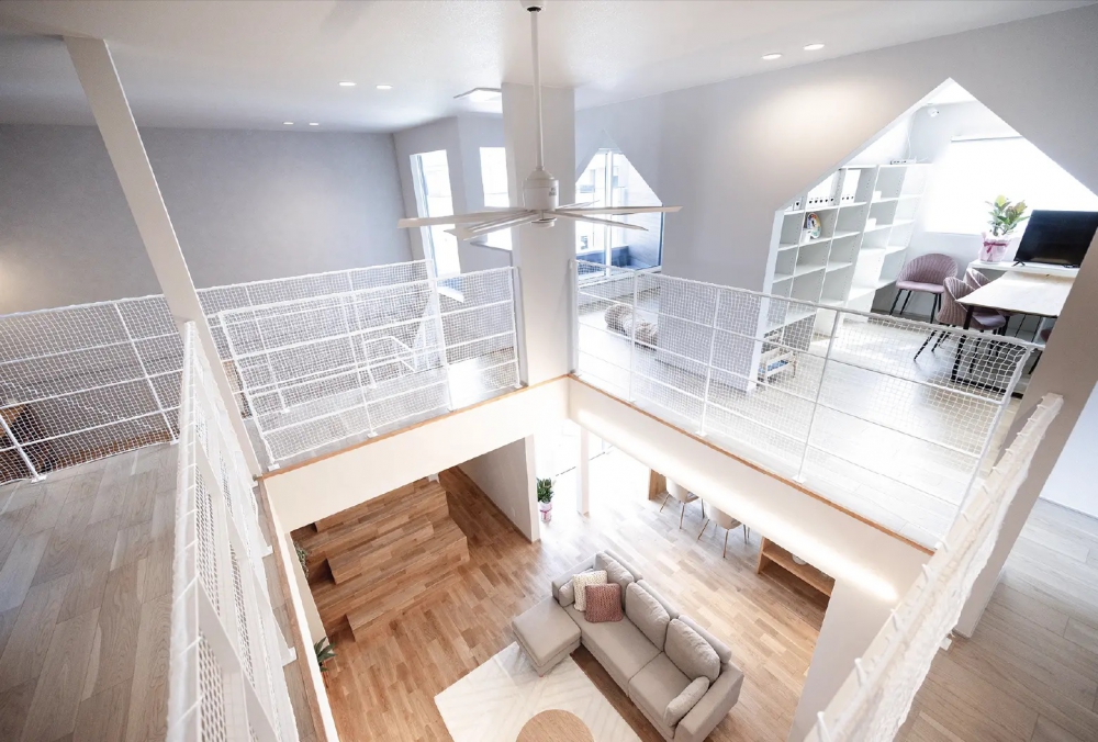 ダイナミックな吹抜にヌックを組み合わせた、開放感とこもり感のある家