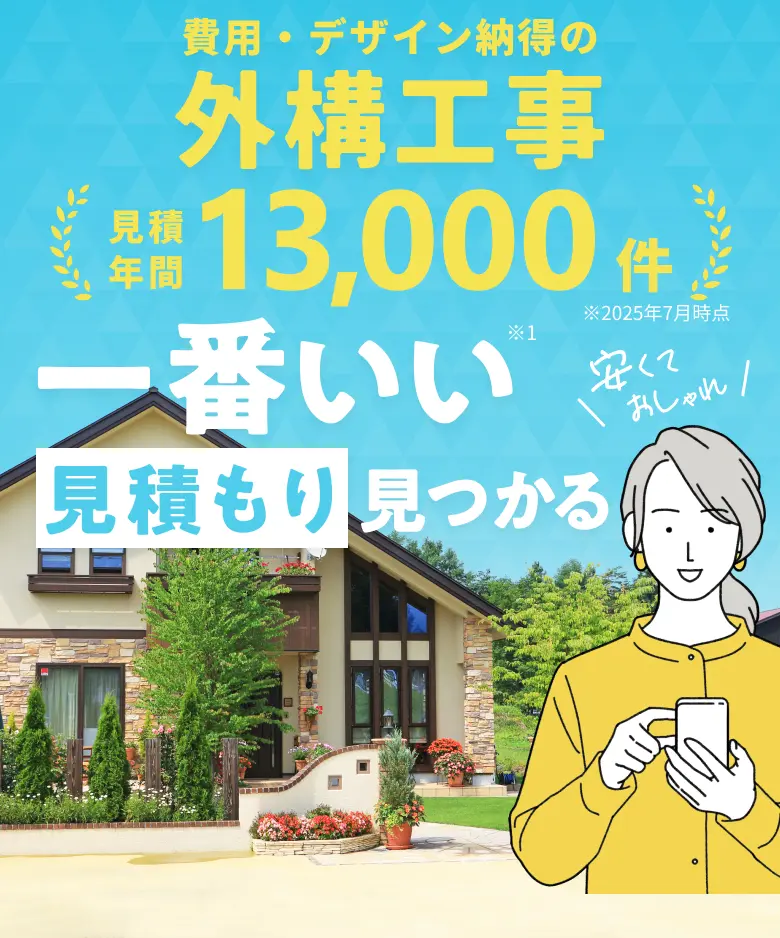 タウンライフエクステリアが厳選した業者への一括見積もりにより、外構工事の費用を抑えることができます。