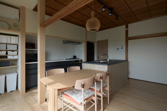 既存の鴨居や垂れ壁など、使える部分はあえて残し、造作と組み合わせて調和のとれたキッチン空間を演出。和の趣を継承しながら、印象的なLDKへと生まれ変わりました。