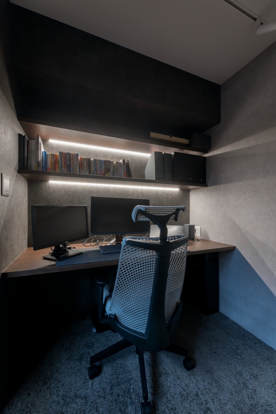 グレイッシュな色調に、タイルや造作家具が上品に馴染む空間。その研ぎ澄まされた美しさは、生活感を抑えた収納やビルトイン家電、そして素材の質感と光の陰影を最大限活かすことで生まれました。さらに、空間をすっきりと見せながら遊び心を忍ばせた隠し扉が、暮らしにさりげない楽しさを添えています。