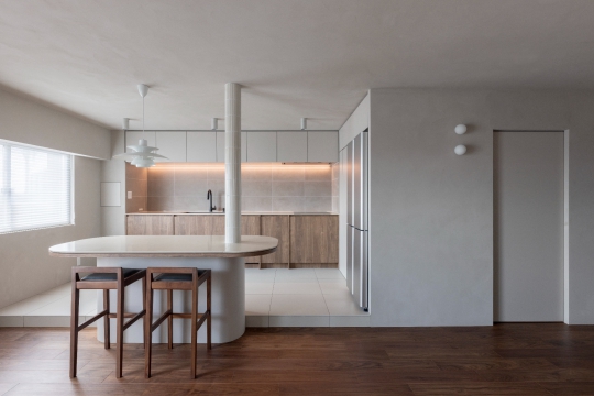 メゾネットマンションの特性を活かし、上階は専用サロン、下階は住居用スペースへ。キッチン周りの優れた回遊動線は料理教室をするには最適で、生徒さん一人一人に目が行き届きます。
