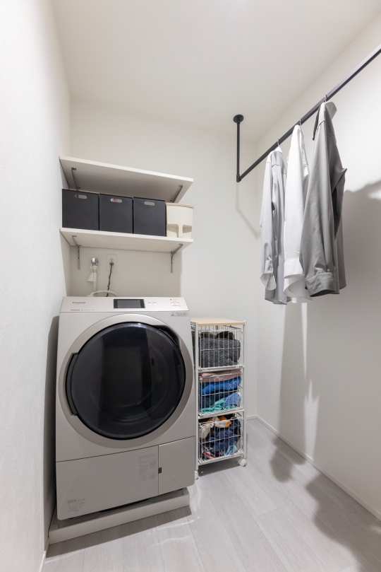 デザインは出来る限りシンプルかつナチュラルになる仕上げに。間取りは、洗面脱衣室~キッチン・パントリー~ダイニングへと通り抜けられる便利な家事動線を実現しました。