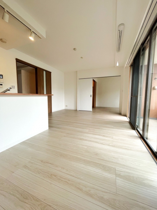 マンション3LDKの内装リフォーム事例です。フローリングを白系統に張替え、隣接する洋室との扉を引戸に変更し、開け放てば空間が広がるように。明るくスッキリとしたリビング空間になりました。