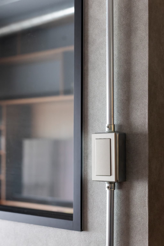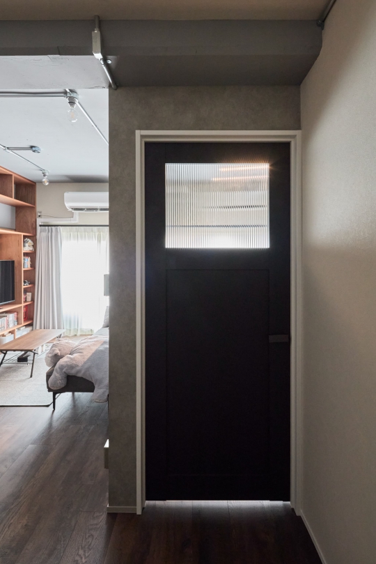 扉や間仕切りは必要最低限にとどめ、空間全体の一体感を大切にしたシンプルで機能的な住まいへと刷新。モルタル・木・白・黒という4つの異なる質感が調和し、無駄を削ぎ落としながらも豊かな表情をもたらしています。素材や色味の切り替えによって自然なゾーニングが生まれ、緩やかにつながる居心地のよさを追求しました。
