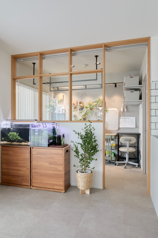室内にいながらガーデニングを楽しめる、植物と暮らす住まい。インナーバルコニーを兼ねたガーデニングブースをLDKと緩やかにつなぎ、日常の中で植物の成長を感じられる空間をつくりました。室内窓越しに広がるグリーンが、暮らしに穏やかなリズムと心地よさをもたらします。植物とともに過ごし、帰ってきてホッと息を抜ける。そんな時間を大切にした住まいが完成しました。