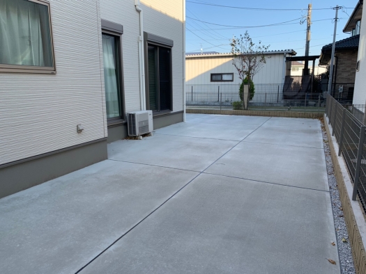 伊勢崎市 N様邸 お手入れが大変な植木や芝を撤去して、目隠しフェンスと土間コンクリートにてスッキリ広々と使えるお庭になりました。
