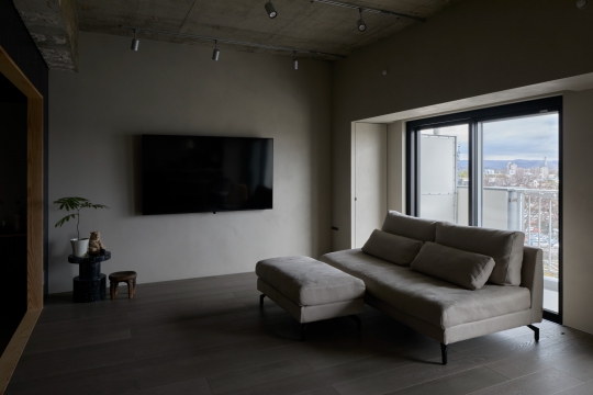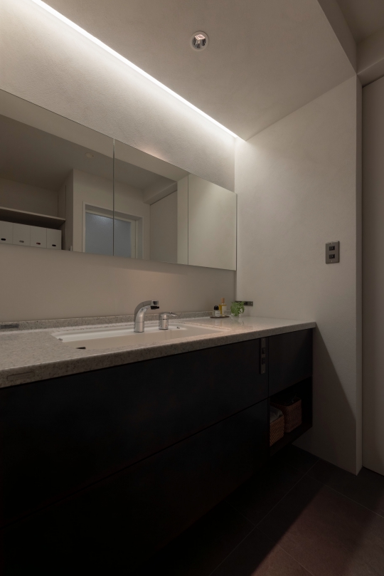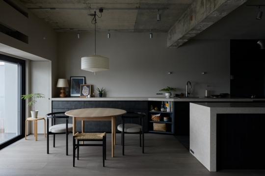 お子さまの独立を機に、今までの暮らしを見つめ直し、住まいを刷新しました。目指したのは、洗練されたグレイッシュな色調と上質な素材感が織り成すホテルライクな空間。静けさと気品に満ちたその佇まいは、何気ない日常にささやかな高揚感をもたらします。こだわりの造作キッチンや収納が美しく溶け込み、日々の暮らしに寄り添った心地よさを実現した住まいです。