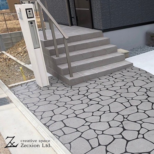 スタンプコンクリートはその名の通り、上にスタンプみたいに模様をつけるんですが、
