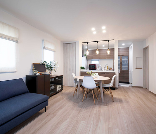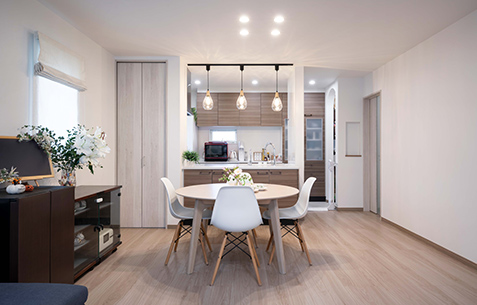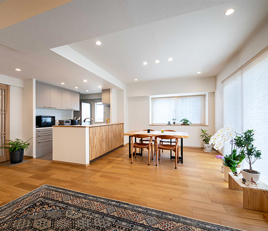 【リビング・ダイニング】光と風が行き渡る開放的なリビングへ。和室と収納を無くして視線の抜けを演出
