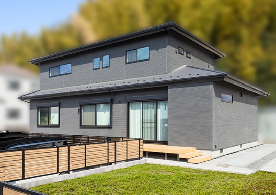 【外壁外装・屋根】ブラックの外壁を採用し、モダンな印象に生まれ変わりました。標準仕様に含まれる耐震工事と屋根の軽量化によって耐震性も大きく改善