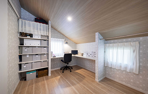 【書斎】[2階・子世帯]Sさん念願の、書斎兼趣味部屋を新設。大容量のロフトもあり便利