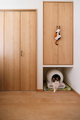 【収納】収納の下部を活用し、居室の広さを確保しながら猫専用スペースを新設